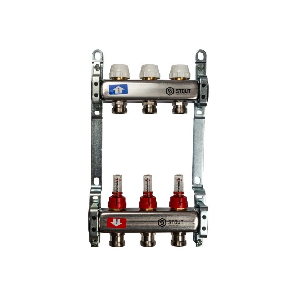 Коллектор с расходомерами на 3 вых 3/4 STOUT